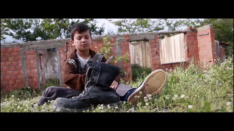 A child faces the consequences of war, while he uses a tank left over from the war to urinate in it.