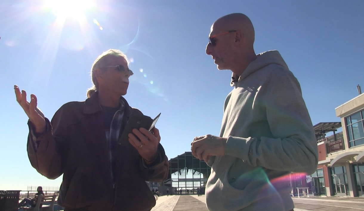 Bob Ellis, of Ocean Grove, has a habit of talking to strangers and then inviting them to dinner. With no set of guidelines or requirements for why or how he greets the unknown, other than an interest in what they are doing or how they carry themselves, or whether or not they offer an easy smile, Ellis has a way of instantly connecting to people and drawing them into conversation. Twice a month he organizes dinner parties he calls Supper Clubs, inviting his new friends and old to share food and conversation. “It’s not about me,” he insists, “I’m just happy if they are. I just like bringing cool and interesting people together.” Ellis’ Supper Club or his fine art of “hello, how are you?” is hardly novel, but in a world where many lament that we are becoming more and more distrustful and less connected, his affinity for meeting new people, and feeding them seems more than a bit unusual. Filmmaker Steve Rogers followed Ellis around while he was meeting and greeting, and captured one of his annual Friendsgivings, a feast of new friends marking the start of the holidays. I Talk To Strangers tells the quirky, sweet tale of one man’s love and need to make strangers into friends, and then into dinner guests.