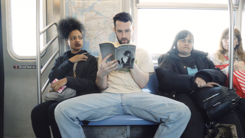 A young man engrossed in a feminist text on a Manhattan-bound Subway gets a little too comfortable.